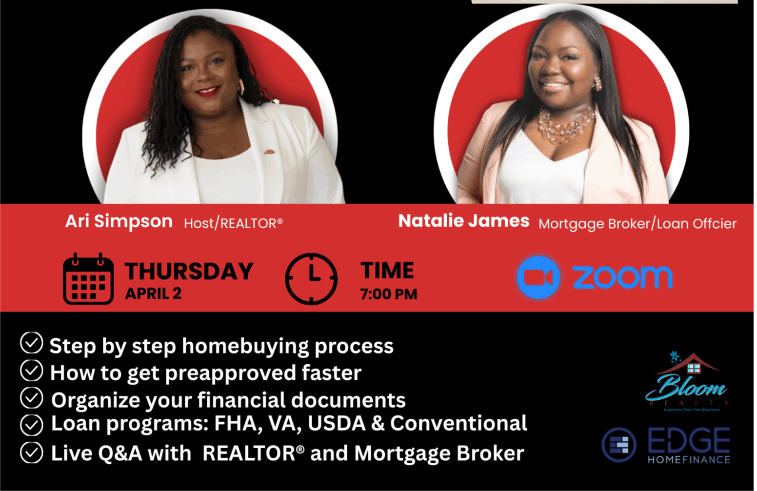 Join REALTOR® Ari Simpson and mortgage expert Natalie James for a live homebuying class. Learn how to get pre-approved, find the right home, and buy faster.